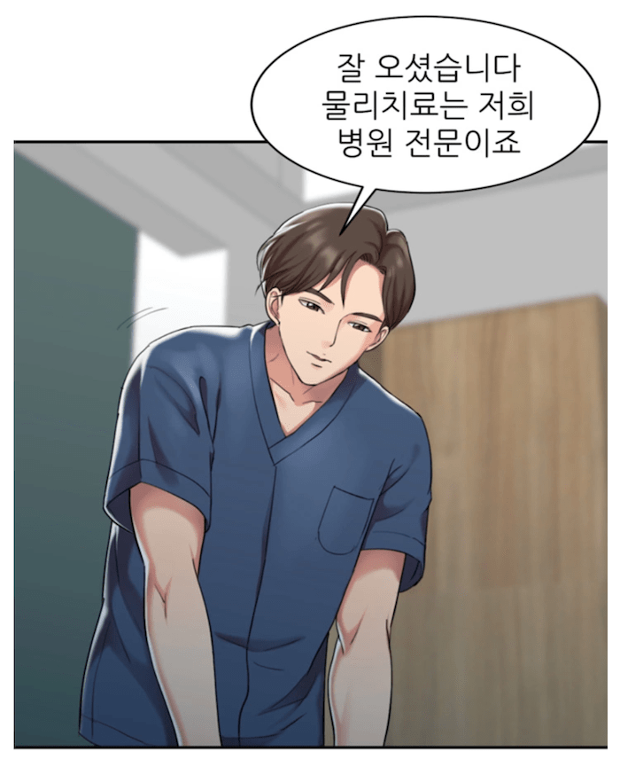 물리치료사가 특별 물리치료 프로그램을 운영하고 있어서 더 많은 사람들이 찾는 것 같아요. 그것도 젊은 여자들이 말이죠... 과연 여자간호사는 진수쌤의 마음을 얻을 수 있을지 ㅎㅎ. FACON 팬이라면 꼭 정주행해야 하는 웹툰 중에 하나 ! 추천합니다 !!