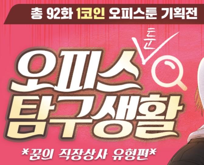 투믹스 1코인 오피스툰 기획전 소개해드려요. 10월 8일까지 진행되니까 관심있는 웹툰이 있다면 1코인으로 볼 수 있을 때 보는게 좋겠죠? 코인도 아끼고 부담없이 볼 수 있으니까요 ㅎㅎ 이벤트 내용은 아래 이미지를 참고해주세요.